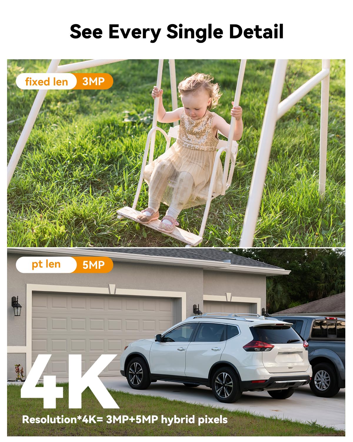 - 【360° Full Coverage Monitoring & Motion Tracking】The fixed lens supports manual angle adjustment within 0-260° pan and 0-30° tilt range, allowing you to set the monitoring angle you desire for continuous surveillance; the rotating lens enables automatic angle adjustment within 0-355° pan and 0-90° tilt range, tracking movements of people or vehicles, truly achieving 360° surveillance coverage without blind spots, ensuring no dynamic details are missed.