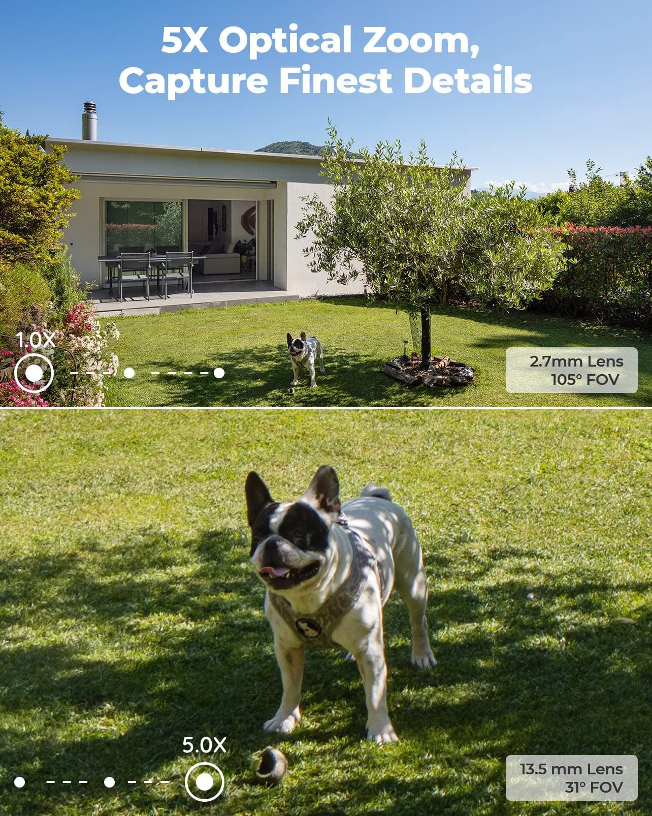 - 4K ULTRA HD WITH 5X OPTICAL ZOOM: The IP PoE security Camera is with 3840x2160 high resolution. It is 1.6X clearer than 5MP and 4X clearer than 1080P. With 5x optical zoom, zoom in for a more detailed image, and zoom out for a wider view. The detailed information you see around your home or shop will be perfectly displayed by LiveView and playback