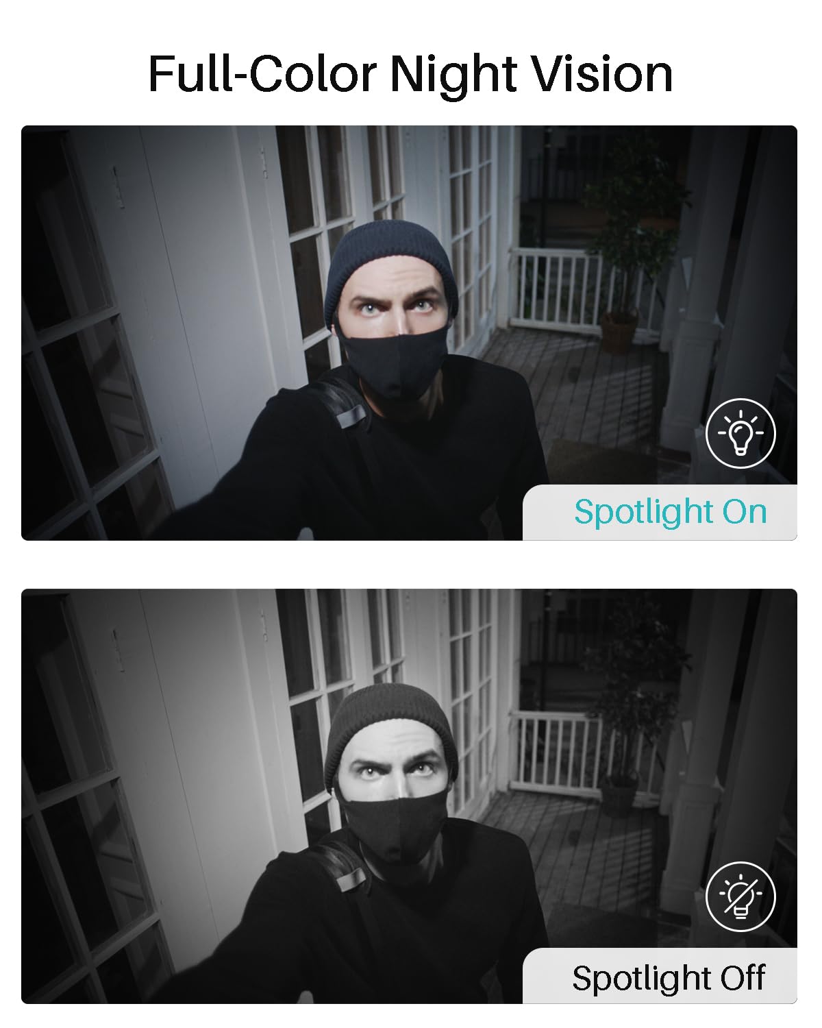 - 【Smart Motion Detection】Both motion/human detection with 98% accuracy. Apart from motion-triggered spotlights, you can manually turn on siren to repel intruders.